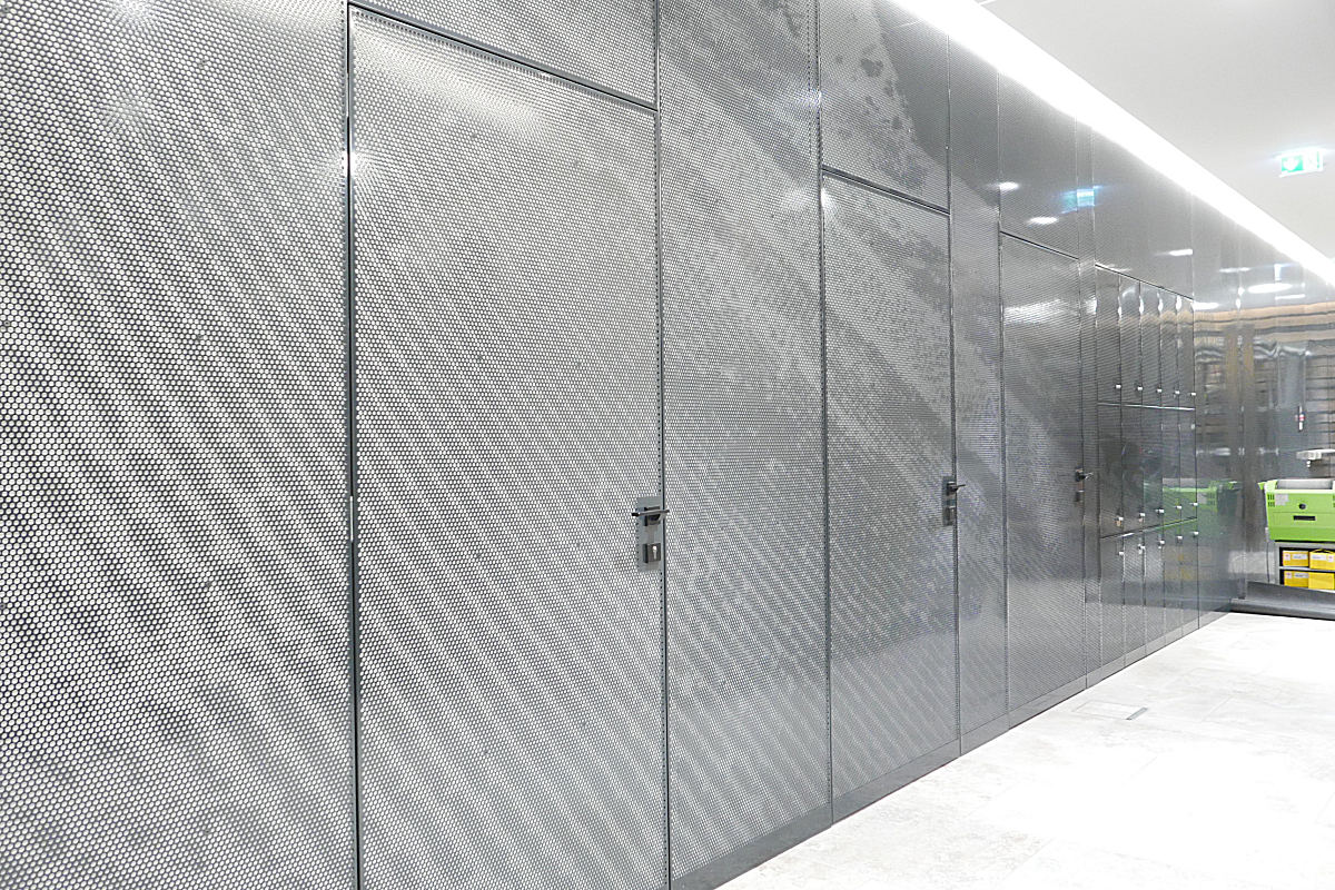 Wall Installation. Fotoblech enhances the ski depot in Lech with a mountain panorama design and integrated doors for storage rooms. Catalog