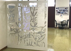 Sichtschutz im Foyer. Fotoblech eignet sich hervorragend als Sichtschutz, wie das Projekt an der Pädagogischen Hochschule Linz zeigt.